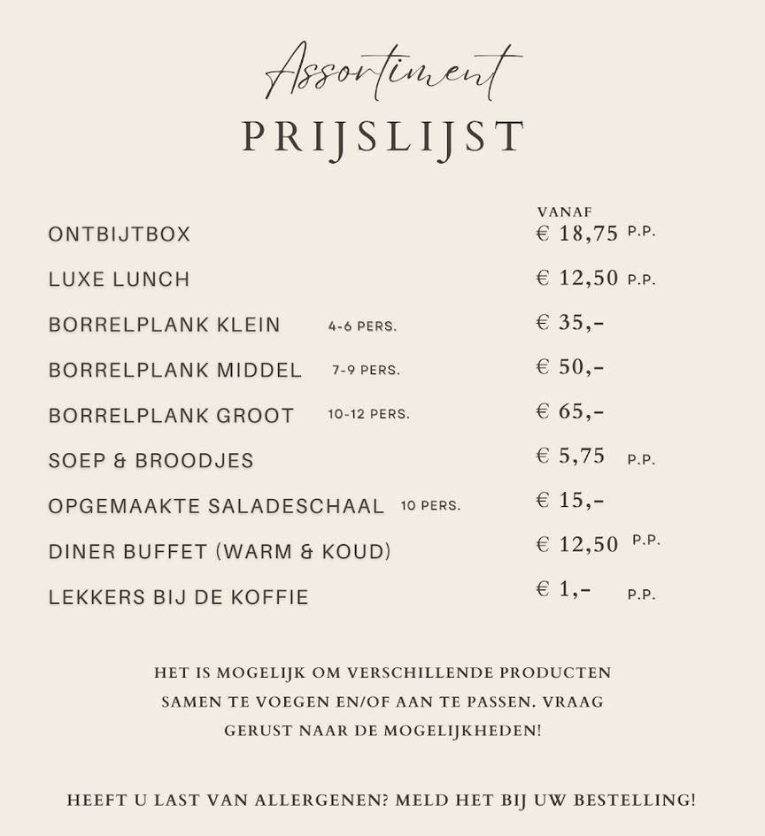 Voor al jouw lekkere lunchpakketten, borrelplanken, dinerbuffetten en meer!